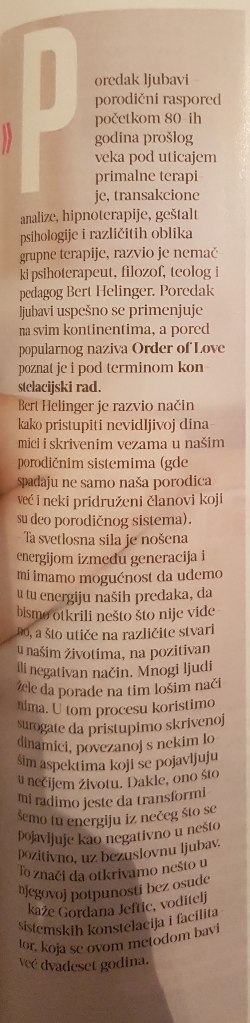 Sistemske konstelacije, Porodične konstelacije ili porodicni raspored, Poredak ljubavi ili Order of love je jedna od metoda tradicionalne medicine koje je Ministarstvo zdravlja Republike Srbije ozvaničilo prema čl. 6. Pravilnika o bližim uslovima, načinu i postupku obavljanja metoda i postupaka tradicionalne medicine (Službeni glasnik Republike Srbije, br.119 оd 14. decembra 2007).